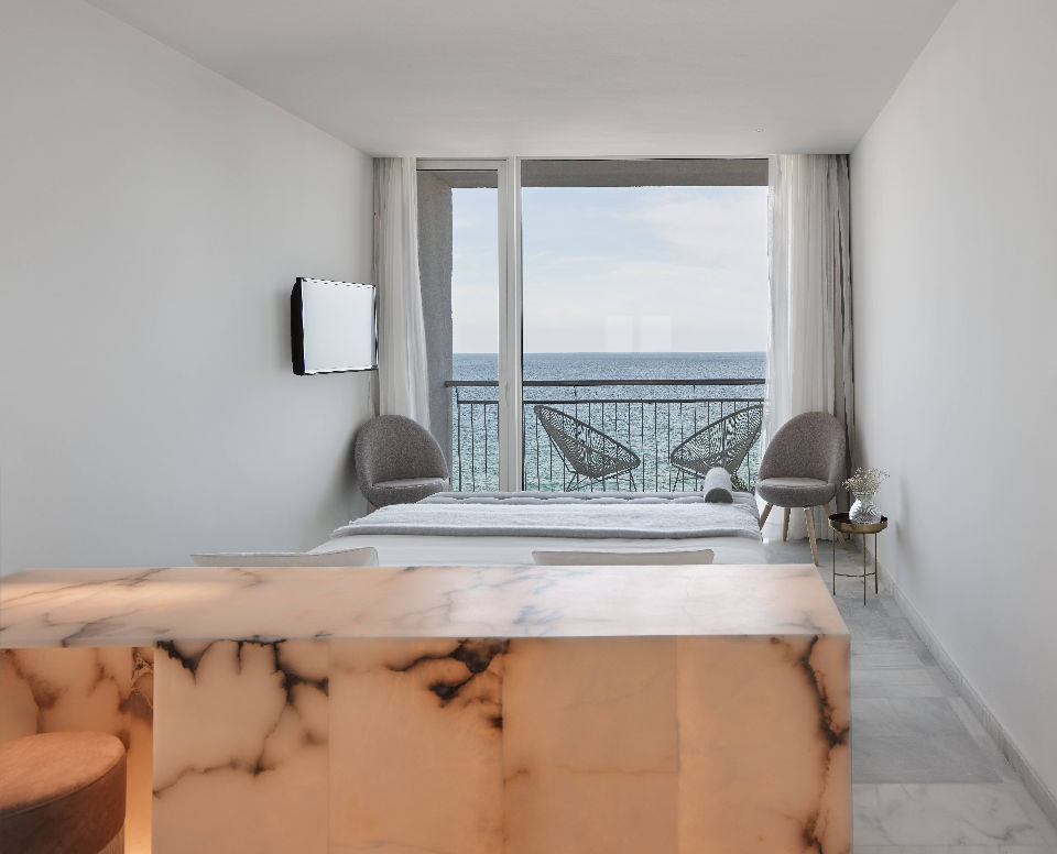 Amb una vista privilegiada al mar, tots els elements de l'habitació panoràmica han estat dissenyats per generar un espai de confort exclusiu.