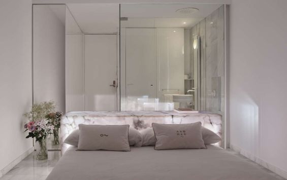 Amb estil i qualitat, l'habitació Panoràmica compta amb un moble principal format per un escriptori i capçalera del llit fet de pedra semipreciosa retro il·luminada que banya l'habitació d'una llum especial.